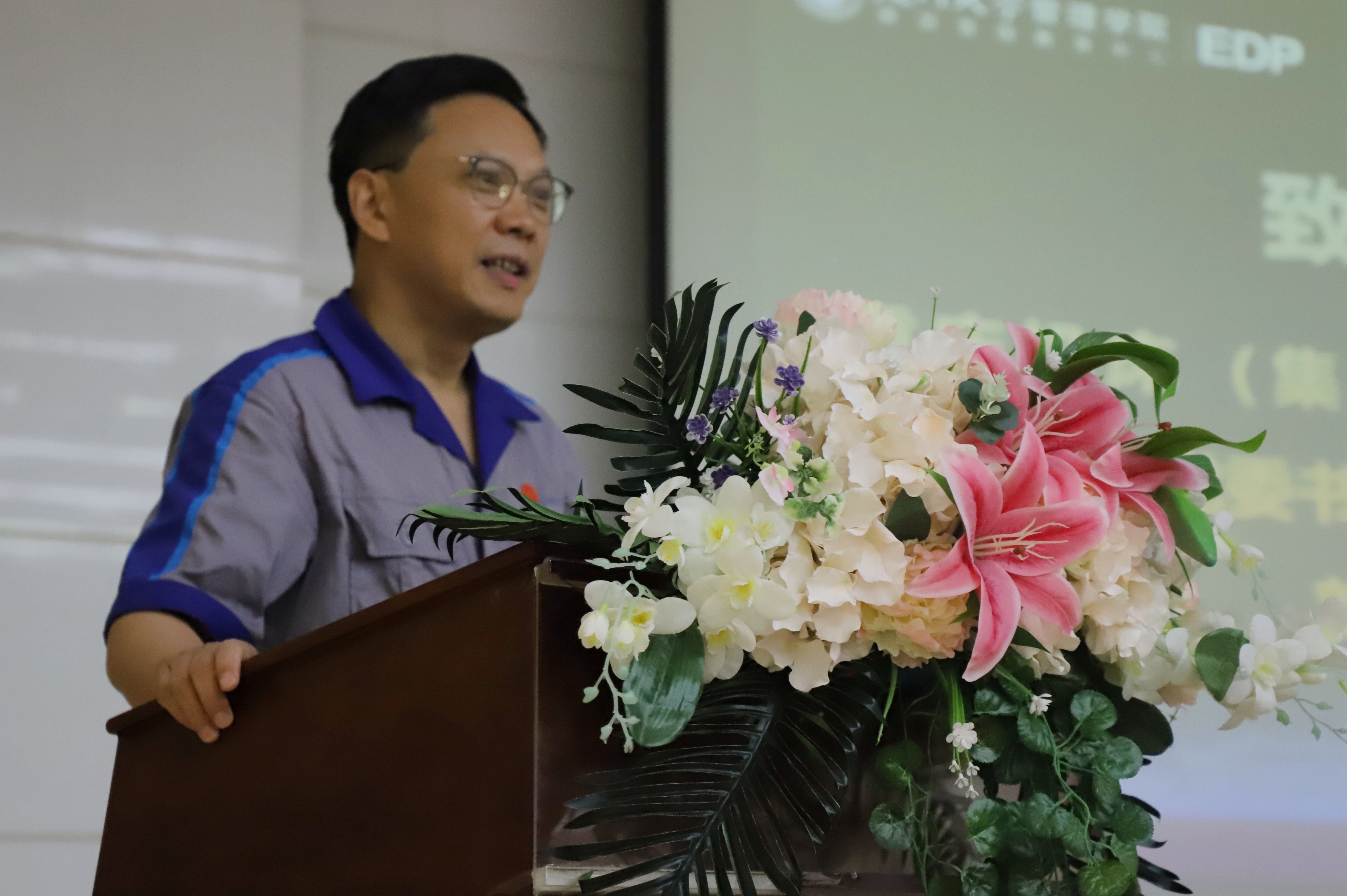 机床集团党委书记、董事长刘德永首先对厦门大学管理学院精心筹划本期培训班表示感谢。他指出,本期培训班是基于个人成长和企业发展的迫切需要,是帮助企业的骨干员工向优秀管理者成功转型。通过分享自己的两段学习经历,强调了培训的重要性,寄语各位学员将国企好干部二十字要求牢记于心,严格要求自己,并对学员提出了两点要求:一是希望年轻干部们珍惜学习机会,通过向教授学习,掌握方法论,做到“治企有方”。二是希望同学们学以致用,知行合一,将所学运用到工作中,积极为企业发展贡献力量。