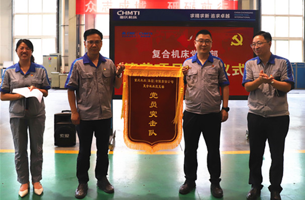 为激发党员和职工群众在生产组织、工艺保障、物资供应等重点环节中的攻坚热情,坚决打赢德善项目交付战,7月12日在复合机床事业部生产现场举行了德善项目党员突击队授旗仪式。机床集团党委书记、董事长刘德永、总经理衡德超亲临现场,党委副书记、纪委书记周玉红主持,复合机床党支部书记梅镇及全体党员、职工参加了授旗仪式。