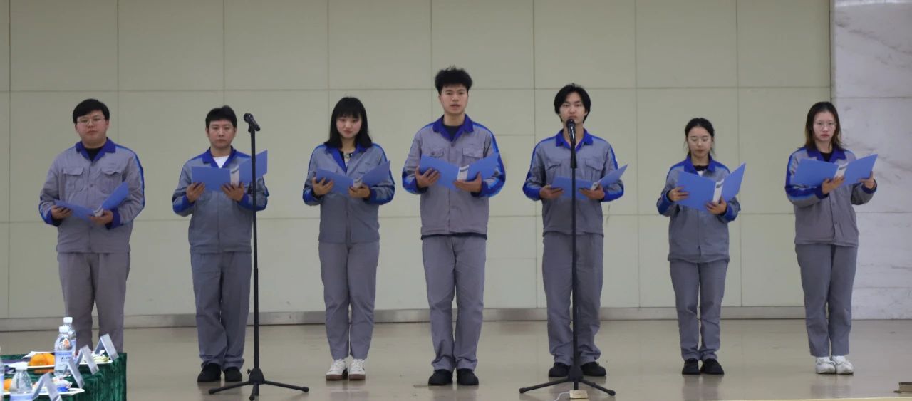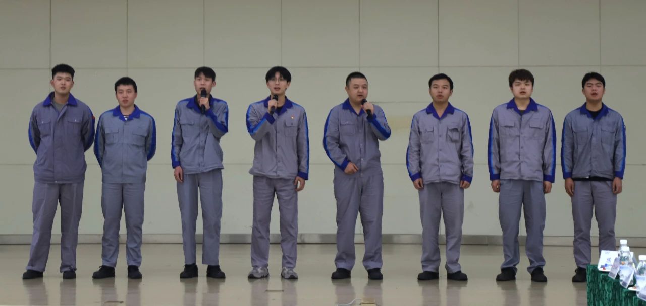 新员工还演出了诗朗诵《礼赞·青春》、合唱《倔强》